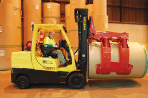 这些节省空间的叉车配备耐用的轮胎和专业的纸张处理附件。