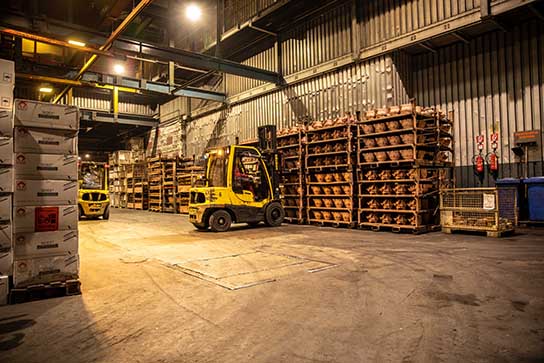 设备一周需要作业 6 天,一天分 3 班全天候作业。大型海斯特叉车特别适合极端条件,而由近 30 台 Fortens 叉车组成的车队每天进行物料处理作业。